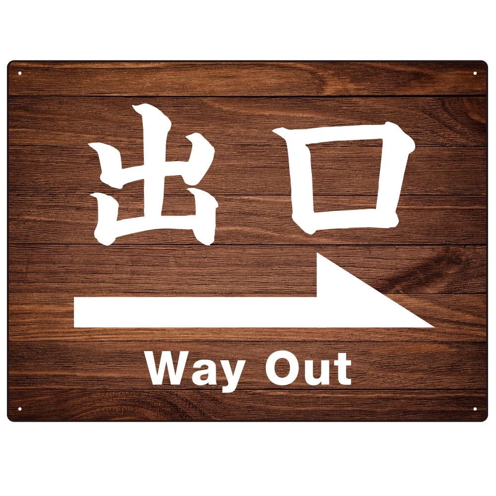 - 和風 濃い目の木目調にくっきり白文字 オリジナル プレート看板 出口/右矢印 W600×H450 マグネットシート (SP-SMD499R-60x45M)