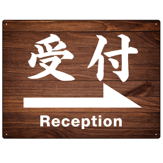 商品説明:和風 濃い目の木目調にくっきり白文字 オリジナル プレート看板 受付/右矢印 W600×H450 マグネットシート (SP-SMD500R-60x45M)