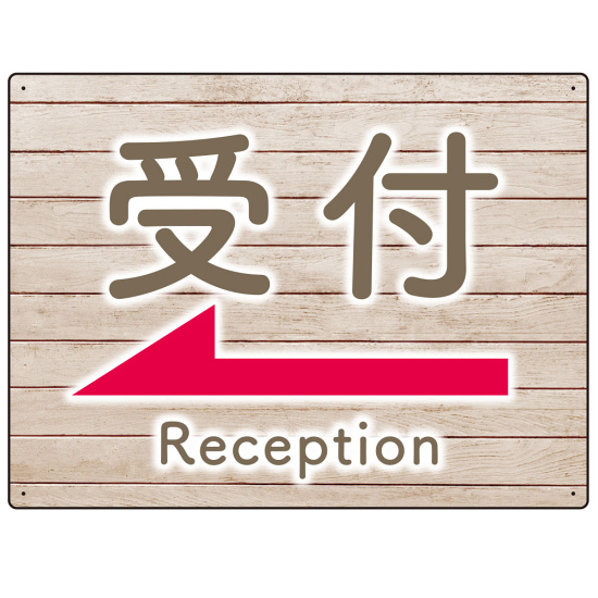 和み系木目調デザイン オリジナル プレート看板 受付/左矢印 W600×H450 マグネットシート (SP-SMD503L-60x45M)