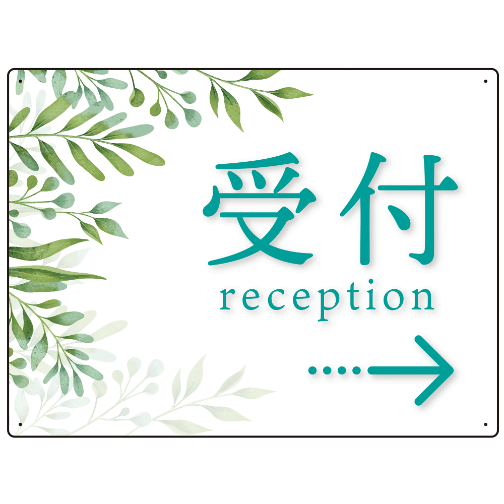 出入口誘導看板 爽やかグリーンデザイン オリジナル プレート看板 受付/右矢印 W600×H450 マグネットシート (SP-SMD513R-60x45M)