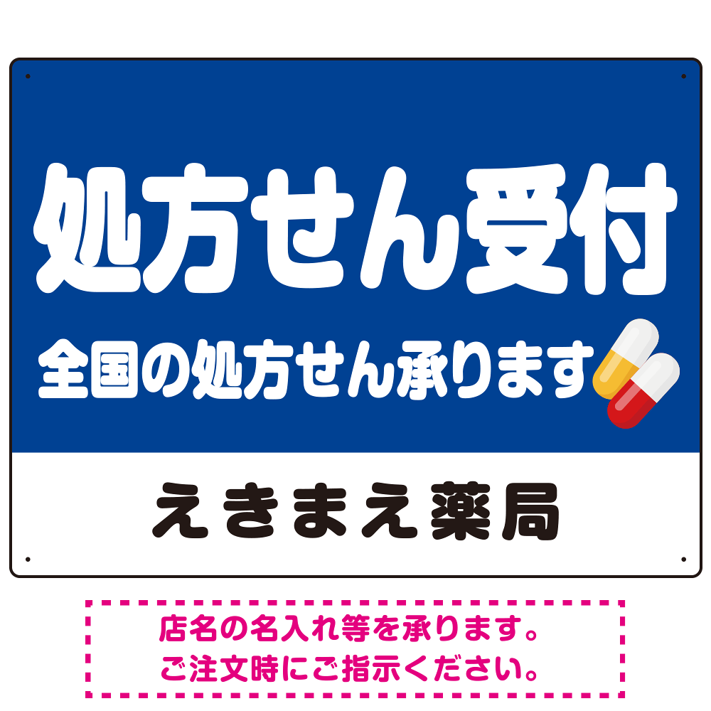 商品説明:処方せん受付 シンプル2行デザイン オリジナル プレート看板 ブルー W600×H450 マグネットシート (SP-SMD559C-60x45M)