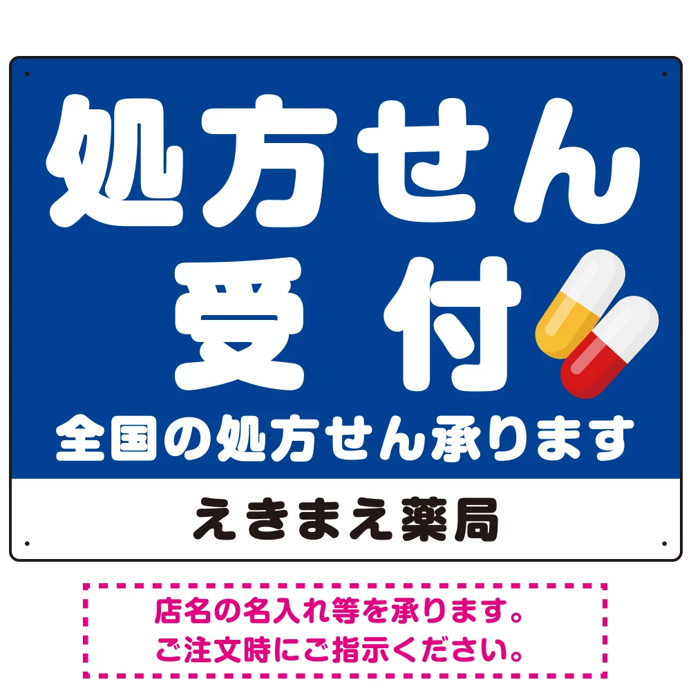 大きな文字の処方せん受付デザイン オリジナル プレート看板 ブルー W600×H450 マグネットシート (SP-SMD560C-60x45M)