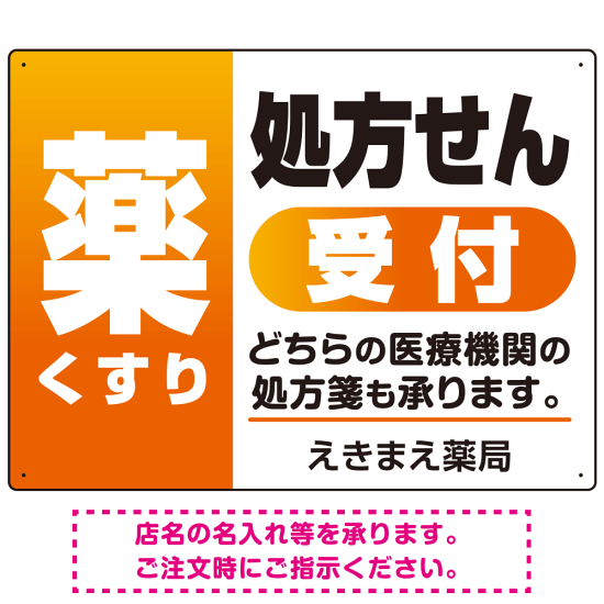 薬 くすり 処方せん受付 グラデーションデザイン オリジナル プレート看板 オレンジ W600×H450 マグネットシート (SP-SMD563A-60x45M)
