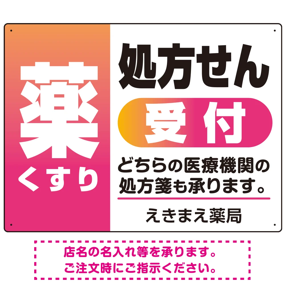 - 薬 くすり 処方せん受付 グラデーションデザイン オリジナル プレート看板 ピンク W600×H450 マグネットシート (SP-SMD563D-60x45M)