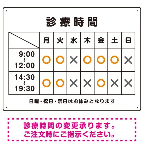 - 診療時間案内 白基調 病院・クリニック向けプレート看板 オレンジ W600×H450 マグネットシート