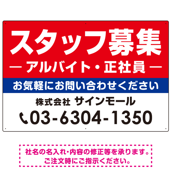 スタッフ募集(アルバイト・正社員) 定番デザイン 求人募集用オリジナルプレート看板 W900×H600 エコユニボード (SP-SMD641-90x60U)