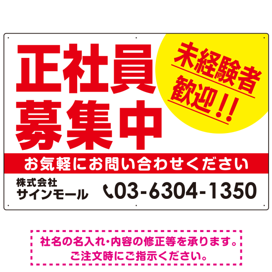 正社員募集中 未経験者歓迎 大きな文字デザイン 求人募集看板 オリジナル プレート看板 レッド W900×H600 アルミ複合板 (SP-SMD642B-90x60A)