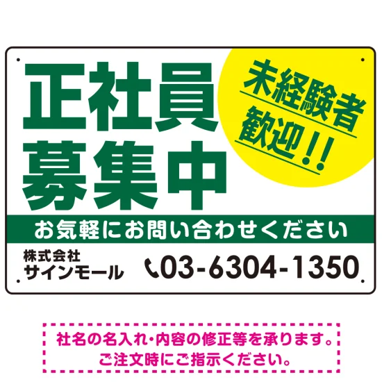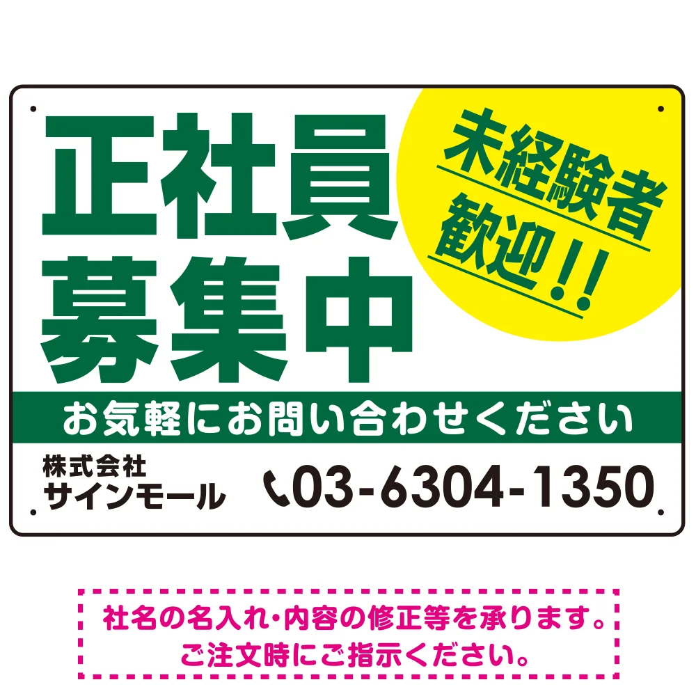 - 正社員募集中 未経験者歓迎 大きな文字デザイン 求人募集看板 オリジナル プレート看板 グリーン W450×H300 エコユニボード (SP-SMD642C-45x30U)