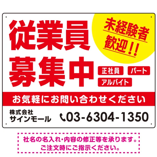 - 従業員募集中 未経験者歓迎 大きな文字デザイン 求人募集看板 オリジナル プレート看板