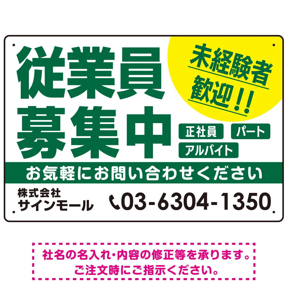 - 従業員募集中 未経験者歓迎 大きな文字デザイン 求人募集看板 オリジナル プレート看板 グリーン W450×H300 マグネットシート (SP-SMD643C-45x30M)