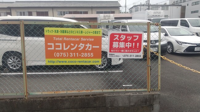 背景色に白抜き文字のシンプルなスタッフ募集看板。