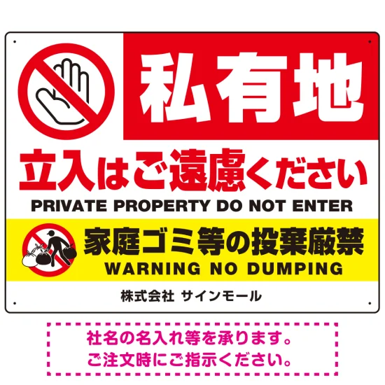 - 私有地の立入禁止とゴミ投棄厳禁 手のひらSTOPデザイン プレート看板 W600×H450 エコユニボード(SP-SMD648-60x45U)