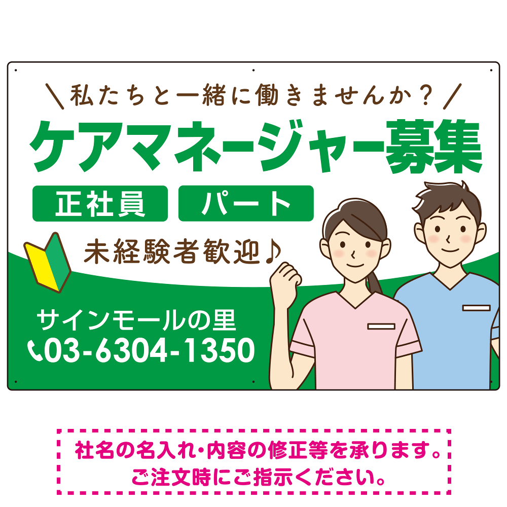 ケアマネジャー(介護支援専門員)募集 男女イラスト付デザイン オリジナル プレート看板 グリーン W900×H600 エコユニボード (SP-SMD661C-90x60U)
