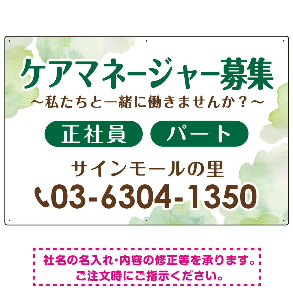 ケアマネジャー(介護支援専門員)募集 柔らかい雰囲気背景デザイン オリジナル プレート看板 グリーン W900×H600 エコユニボード (SP-SMD660C-90x60U)