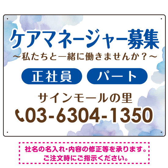ケアマネジャー(介護支援専門員)募集 柔らかい雰囲気背景デザイン オリジナル プレート看板 ブルー W600×H450 エコユニボード (SP-SMD660D-60x45U)