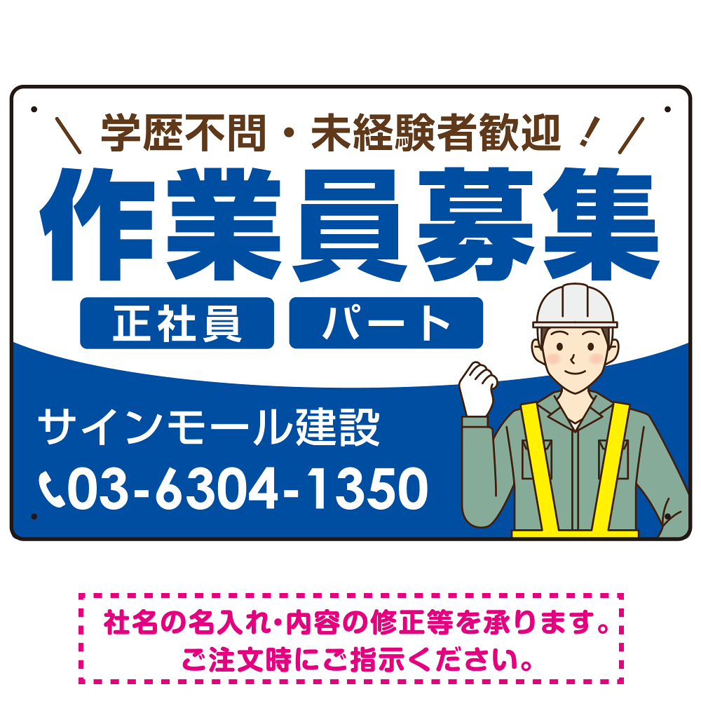 作業員募集 イラスト付デザイン オリジナル プレート看板 ブルー W450×H300 エコユニボード (SP-SMD665C-45x30U)