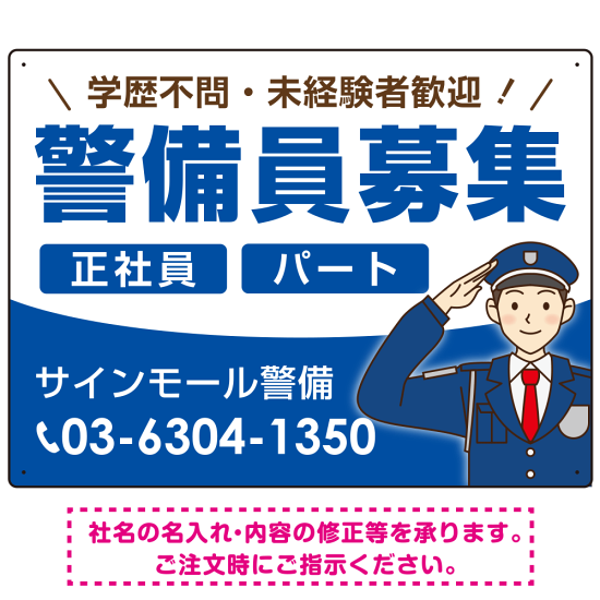 警備員募集 敬礼ポーズイラスト付デザイン オリジナル プレート看板 ブルー W600×H450 エコユニボード (SP-SMD662C-60x45U)