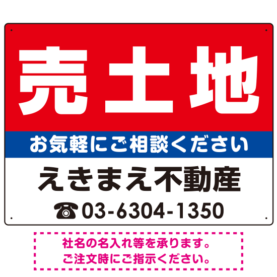 商品説明:売土地 オリジナル プレート看板 赤背景 W600×H450 エコユニボード (SP-SMD668A-60x45U)