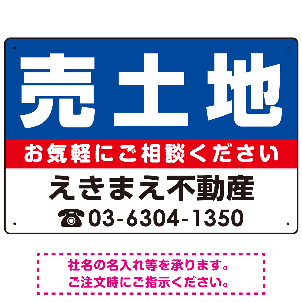 売土地 オリジナル プレート看板 青背景 W450×H300 エコユニボード (SP-SMD668B-45x30U)
