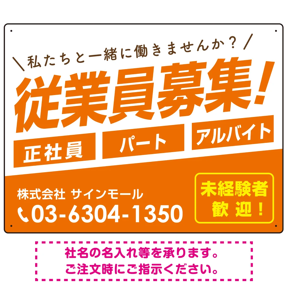 - 従業員募集 シンプル 斜行文字スタイルデザイン オリジナル プレート看板 オレンジ W600×H450 マグネットシート (SP-SMD670A-60x45M)