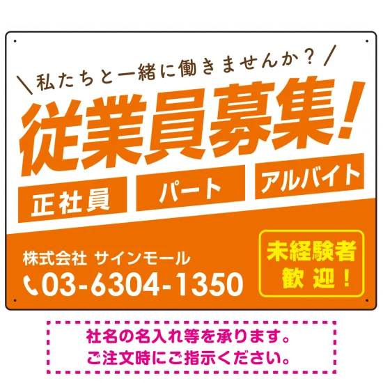 従業員募集 シンプル 斜行文字スタイルデザイン オリジナル プレート看板 オレンジ W600×H450 マグネットシート (SP-SMD670A-60x45M) の商品詳細