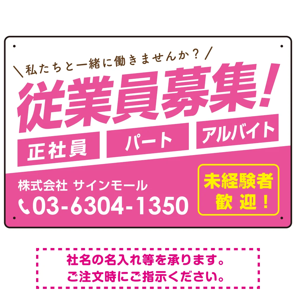 従業員募集 シンプル 斜行文字スタイルデザイン オリジナル プレート看板 ピンク W450×H300 マグネットシート (SP-SMD670B-45x30M)