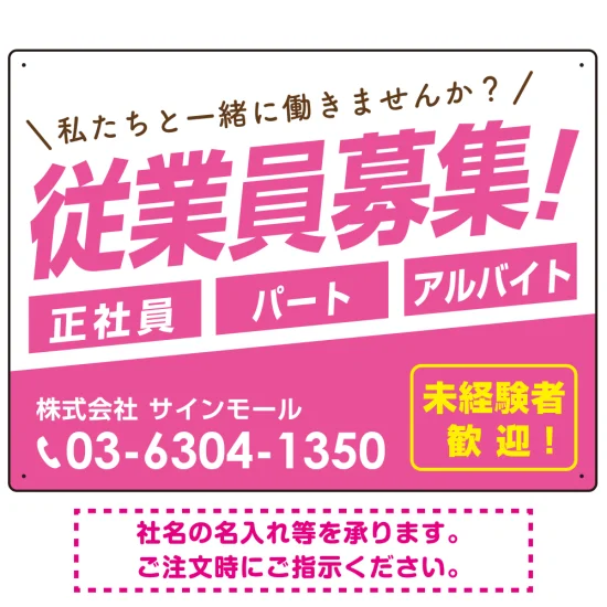 従業員募集 シンプル 斜行文字スタイルデザイン オリジナル プレート看板 ピンク W600×H450 エコユニボード (SP-SMD670B-60x45U)