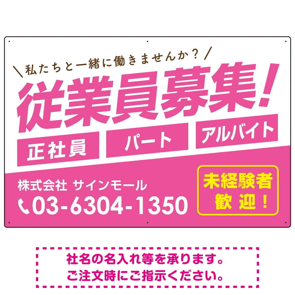 従業員募集 シンプル 斜行文字スタイルデザイン オリジナル プレート看板 ピンク W900×H600 アルミ複合板 (SP-SMD670B-90x60A)