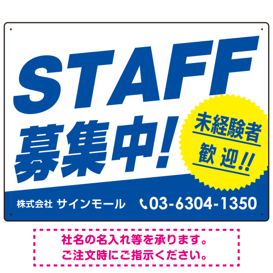 STAFF募集 未経験歓迎 スタイリッシュな従業員募集看板 オリジナル プレート看板 ブルー W600×H450 エコユニボード (SP-SMD671B-60x45U)