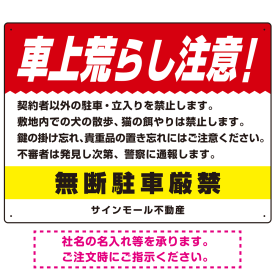車上荒らし注意 無断駐車厳禁 駐車場注意看板 オリジナル プレート看板 レッド W600×H450 エコユニボード (SP-SMD672A-60x45U)
