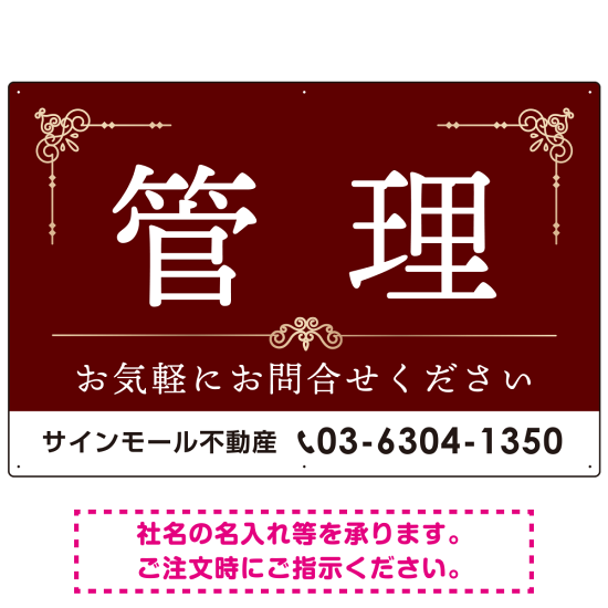- 不動産向け 管理 飾り罫付デザイン オリジナル プレート看板 レッド W900×H600 マグネットシート (SP-SMD674A-90x60M)