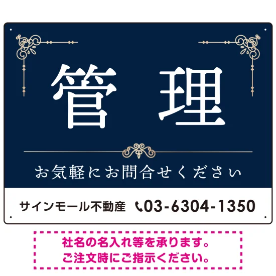 不動産向け 管理 飾り罫付デザイン オリジナル プレート看板 ブルー W600×H450 エコユニボード (SP-SMD674B-60x45U)