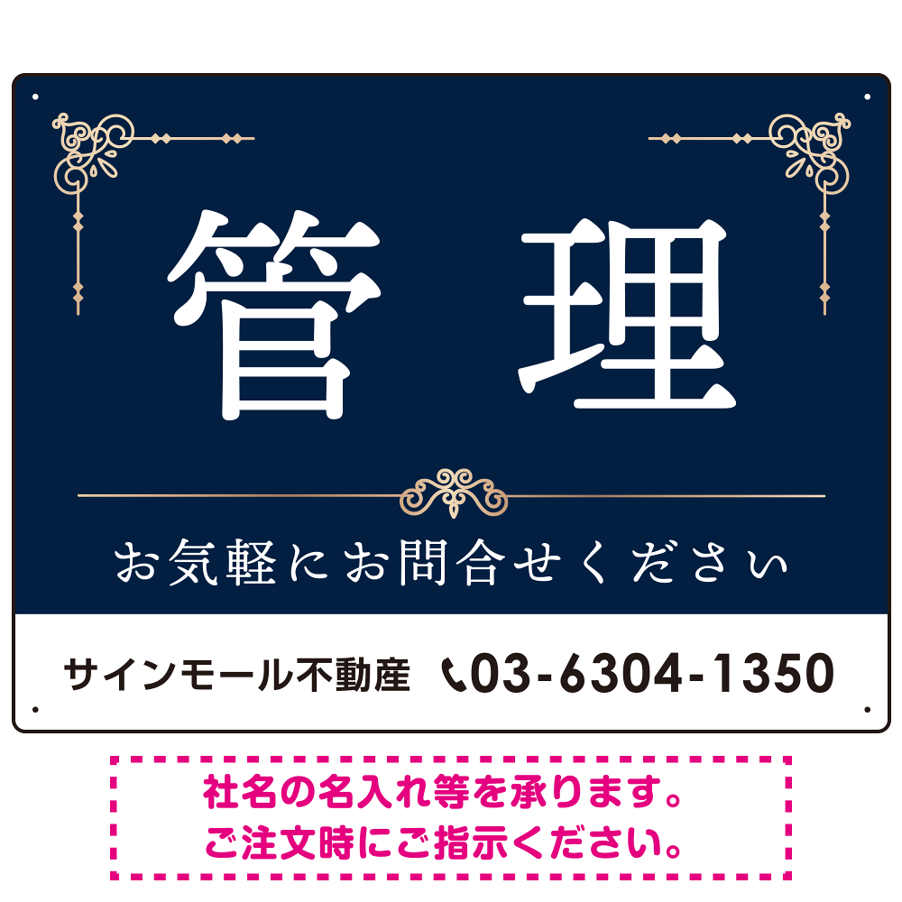 不動産向け 管理 飾り罫付デザイン オリジナル プレート看板 ブルー W600×H450 アルミ複合板 (SP-SMD674B-60x45A)