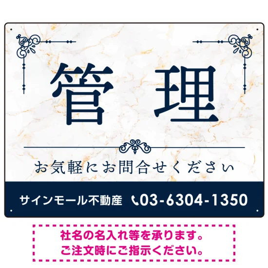 大理石調 飾り罫付き 管理 不動産向けデザイン オリジナルプレート看板 ブルー W600×H450 アルミ複合板 (SP-SMD675B-60x45A) の商品詳細