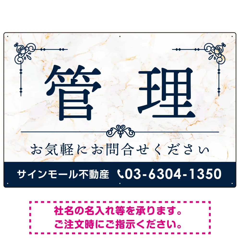 大理石調 飾り罫付き 管理 不動産向けデザイン オリジナルプレート看板 ブルー W900×H600 マグネットシート (SP-SMD675B-90x60M) の商品詳細