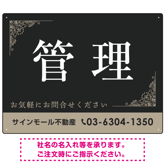 商品説明:管理 ダークグレー・飾り罫付きデザイン オリジナルプレート看板 W600×H450 エコユニボード (SP-SMD676-60x45U)