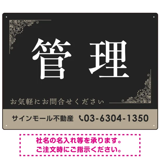 「管理 ダークグレー・飾り罫付きデザイン オリジナルプレート看板 W600×H450 エコユニボード (SP-SMD676-60x45U)」の導入をご検討中ですか? 大量注文・複数台のご検討に応じたお見積りのご相談、最短納期や送料、仕様・サイズの確認など、 管理物件用プレート看板選びをまとめてサポートいたします。