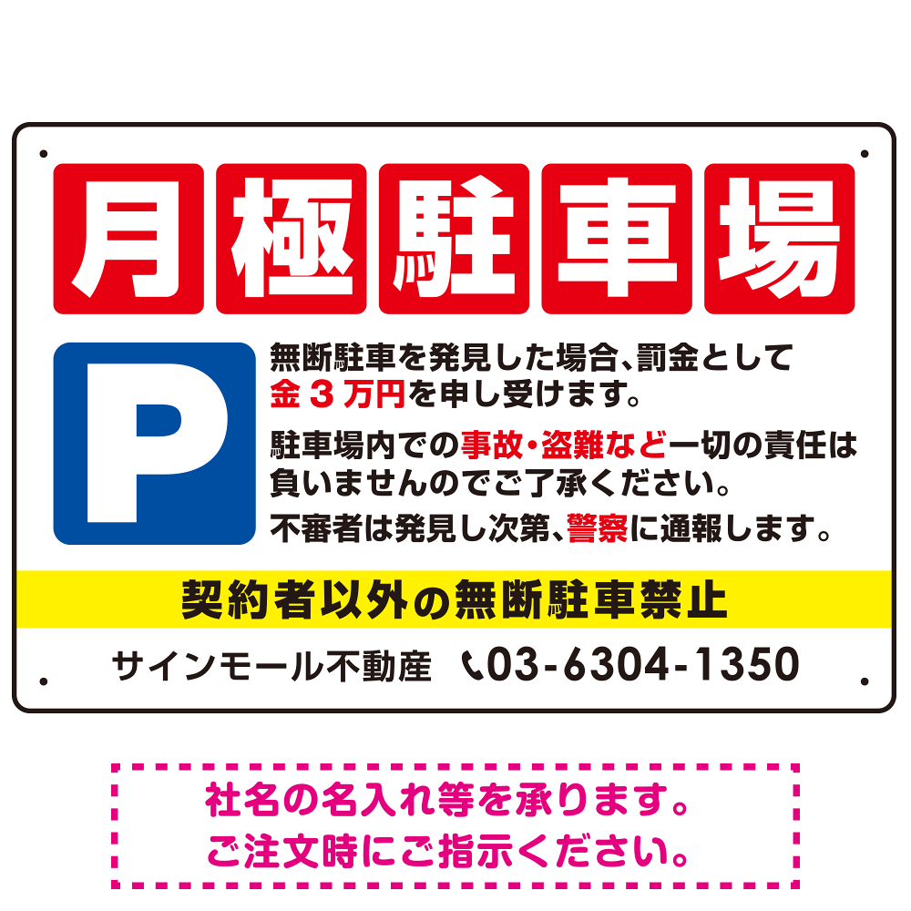 契約者以外の無断駐車を禁止する「月極駐車場」用プレート看板
