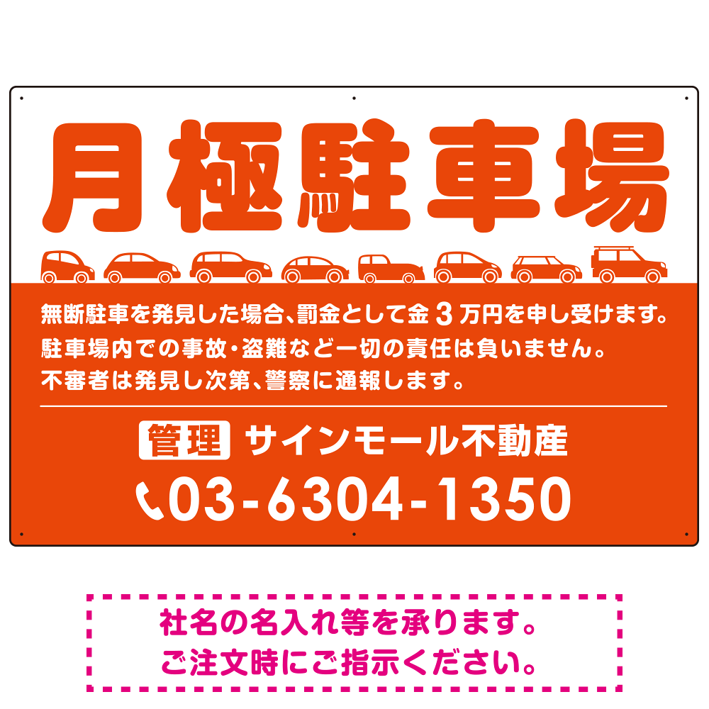 月極駐車場 車が並ぶイラスト付デザイン オリジナル プレート看板 オレンジ W900×H600 エコユニボード (SP-SMD679A-90x60U)