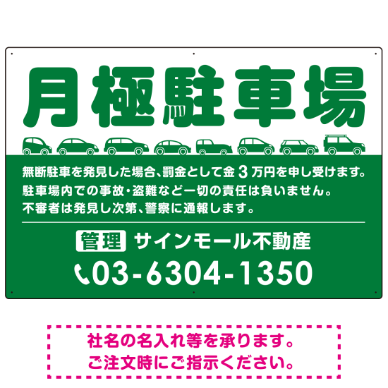月極駐車場 車が並ぶイラスト付デザイン オリジナル プレート看板 グリーン W900×H600 エコユニボード (SP-SMD679B-90x60U)