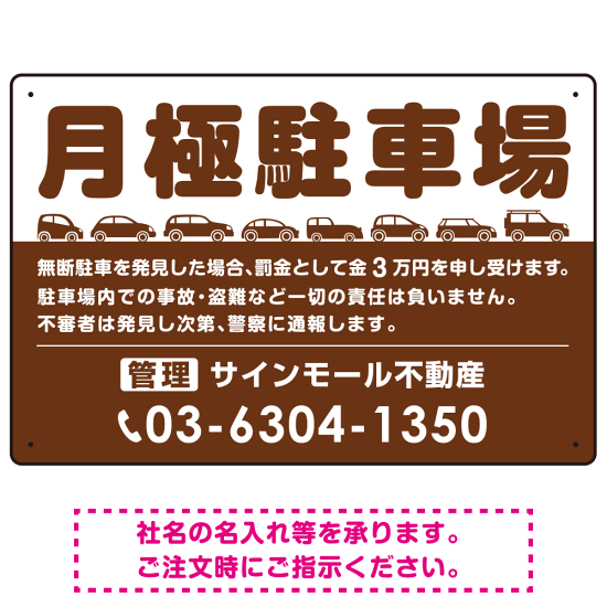 商品説明:月極駐車場 車が並ぶイラスト付デザイン オリジナル プレート看板 ブラウン W450×H300 エコユニボード (SP-SMD679C-45x30U)