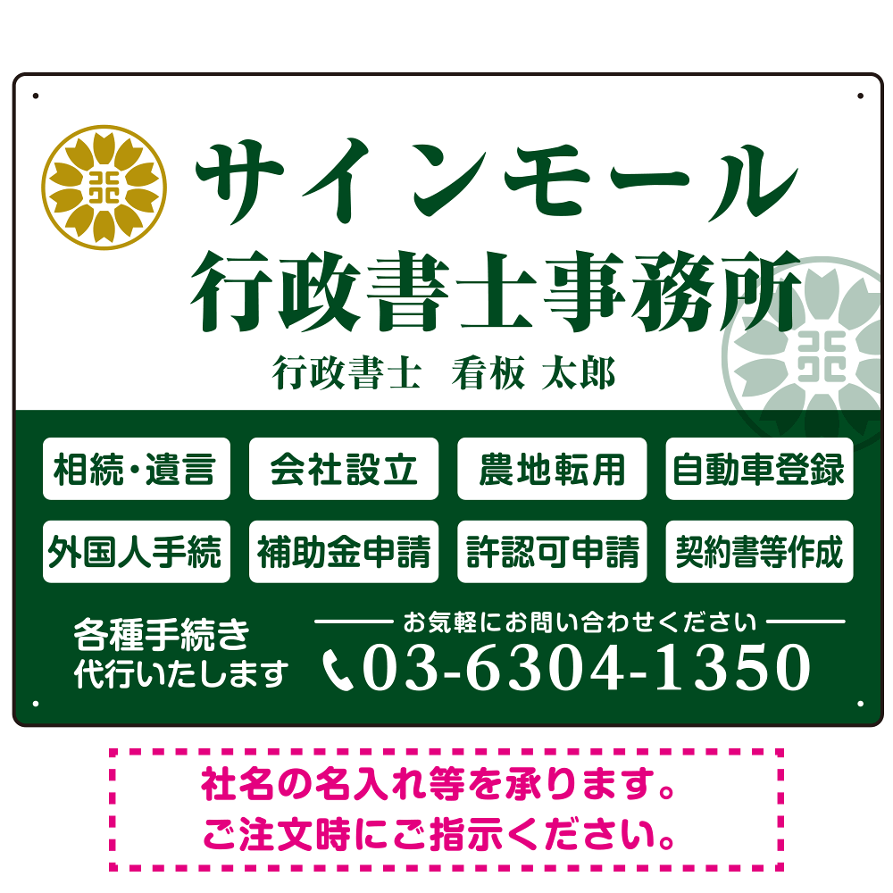 業務案内 白枠デザイン 行政書士・司法書士事務所向けプレート看板 プレート看板 グリーン W600×H450 エコユニボード (SP-SMD680B-60x45U)