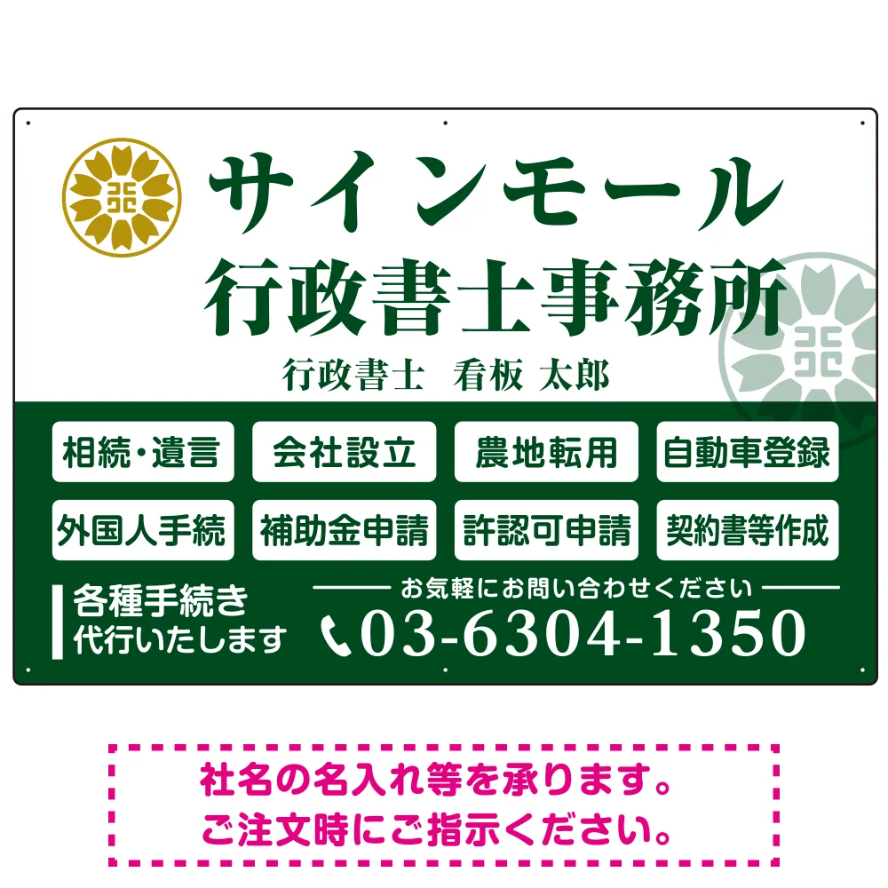 - 業務案内 白枠デザイン 行政書士・司法書士事務所向けプレート看板 プレート看板 グリーン W900×H600 アルミ複合板 (SP-SMD680B-90x60A)