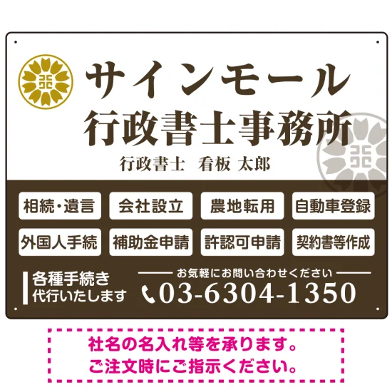 - 業務案内 白枠デザイン 行政書士・司法書士事務所向けプレート看板 プレート看板 ブラウン W600×H450 アルミ複合板 (SP-SMD680C-60x45A)