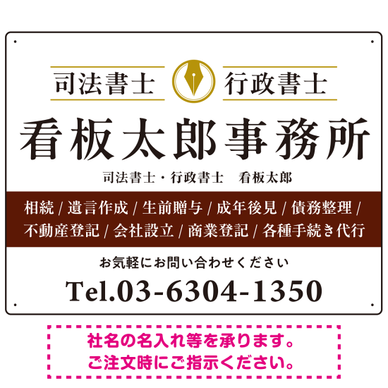 端正な印象のスッキリデザイン 行政書士・司法書士事務所向けプレート看板 プレート看板 ブラウン W600×H450 マグネットシート (SP-SMD681D-60x45M)