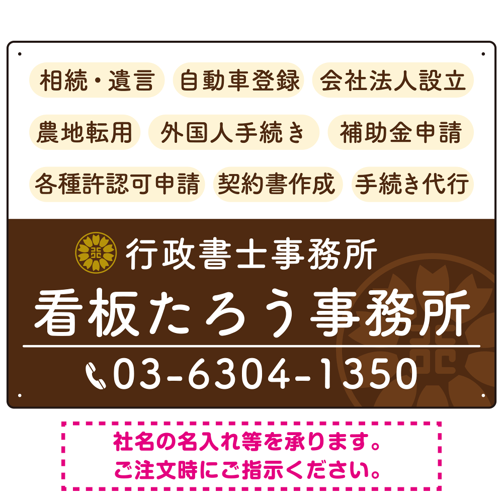 商品説明:配色が整ったモダンデザイン 行政書士・司法書士事務所向けプレート看板 プレート看板 ブラウン W600×H450 エコユニボード (SP-SMD683C-60x45U)
