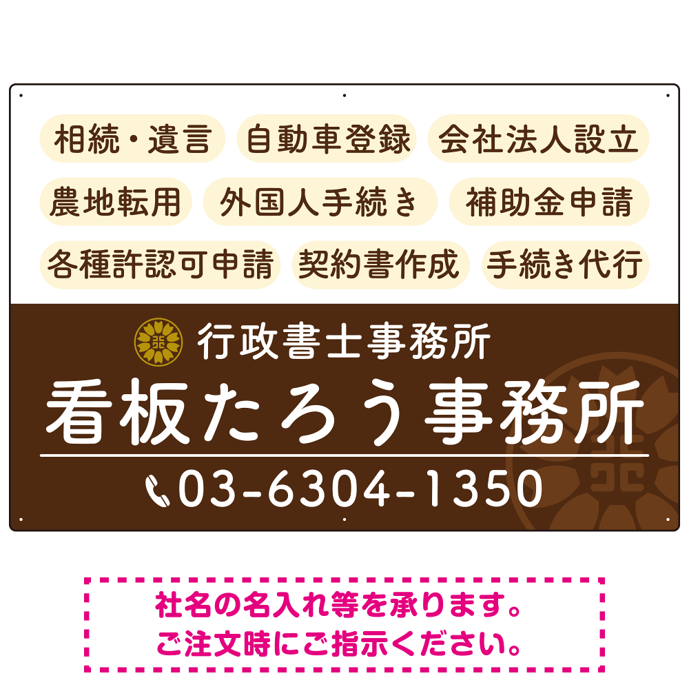 商品説明:配色が整ったモダンデザイン 行政書士・司法書士事務所向けプレート看板 プレート看板 ブラウン W900×H600 エコユニボード (SP-SMD683C-90x60U)