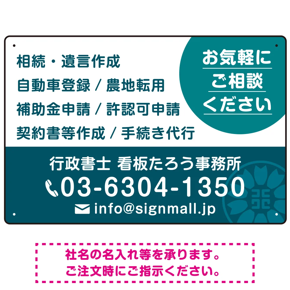 ご相談を促す丸型アクセント付きデザイン 行政書士・司法書士事務所向けプレート看板 プレート看板 ターコイズ W450×H300 エコユニボード (SP-SMD684C-45x30U)