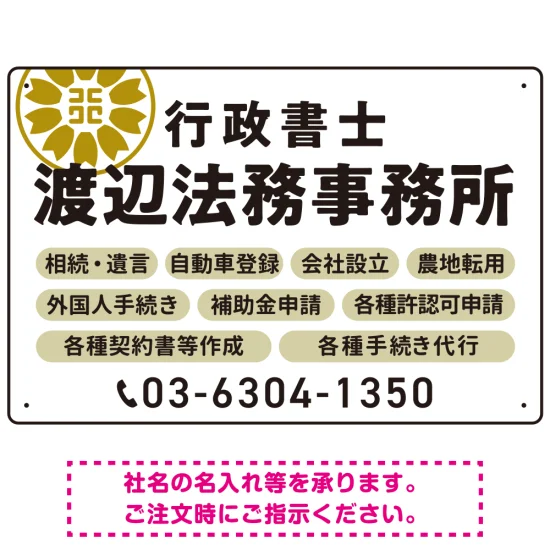 - 温かみのあるゴシック体で目を引く大胆デザイン 行政書士・司法書士事務所向けプレート看板 プレート看板