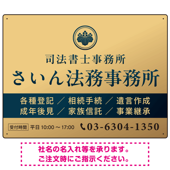 ネイビーとゴールドが映える特別な行政書士・司法書士事務所向けデザインプレート看板